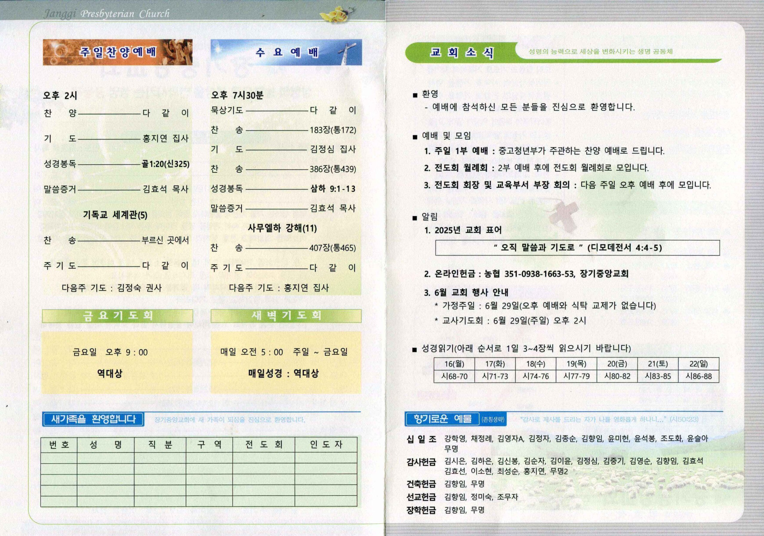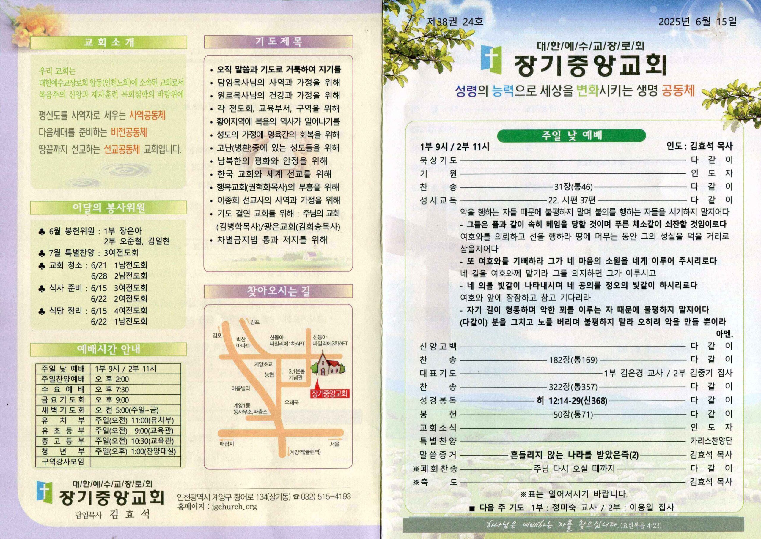 장기중앙교회 주보 2025년 6월 15일 – 예배 안내 및 소식