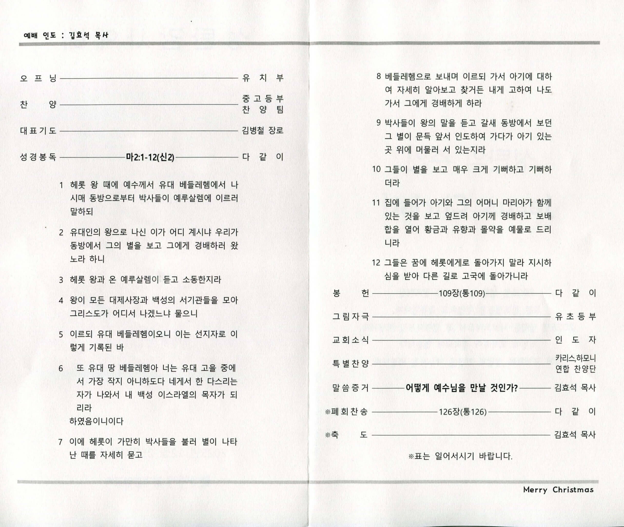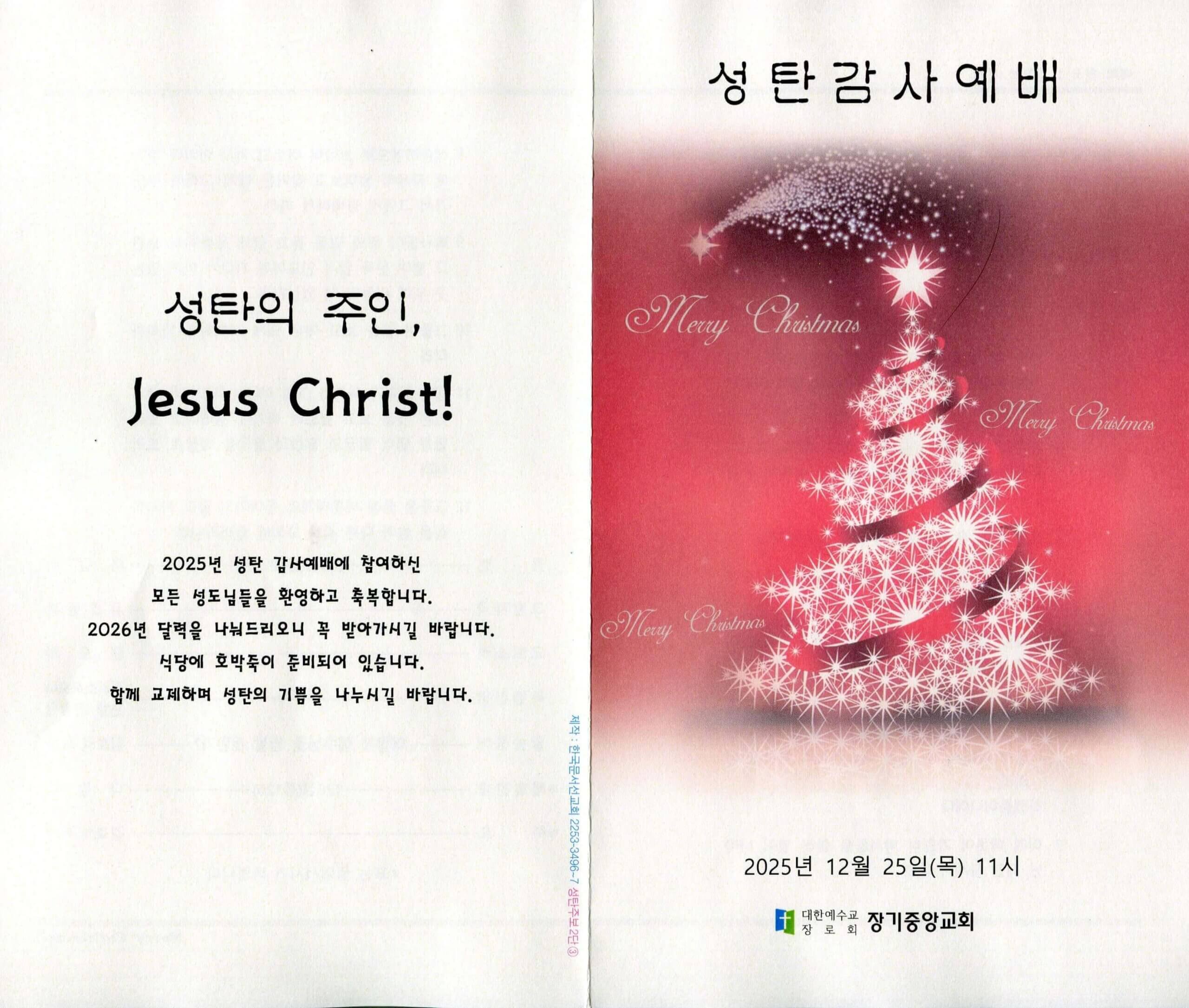 2025년 12월 25일 성탄감사예배 주보