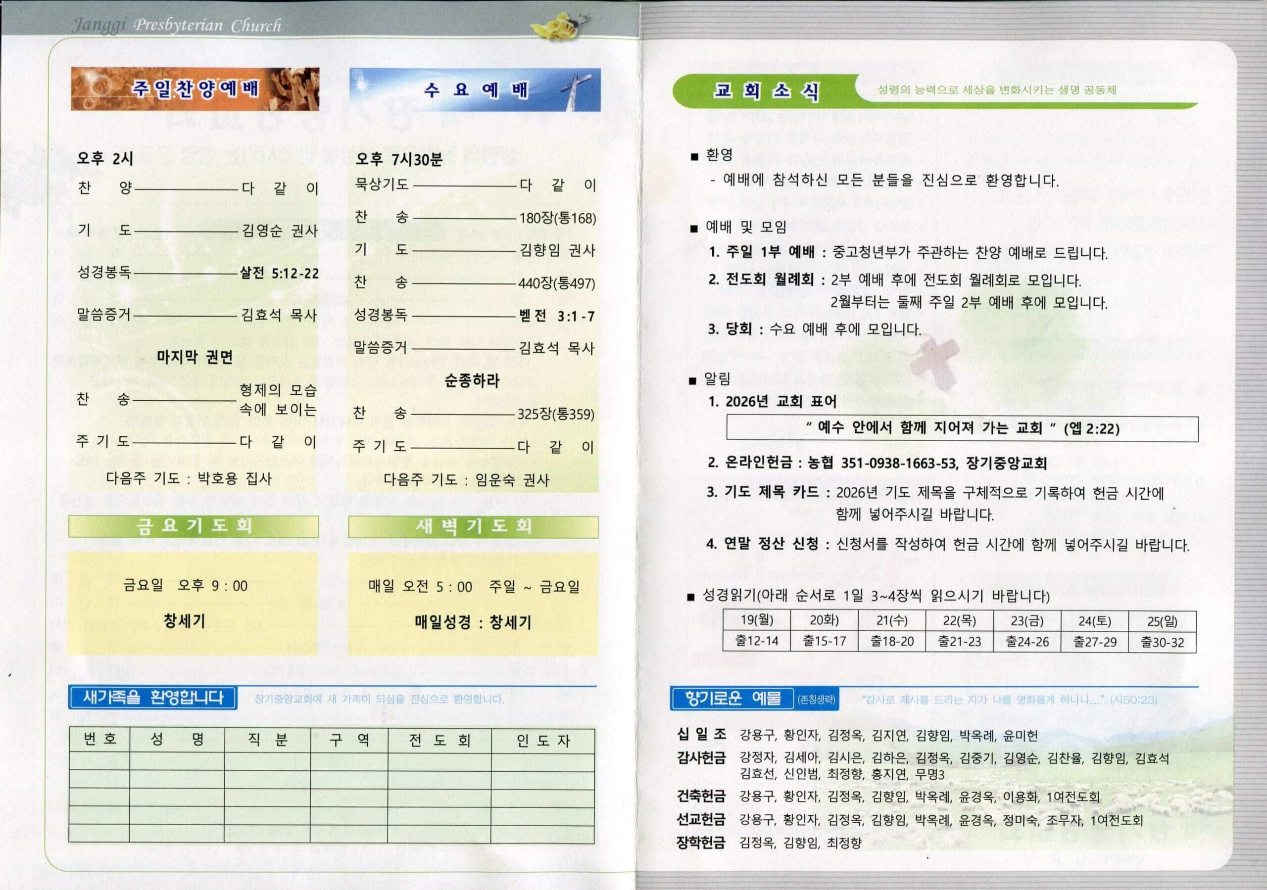 - 2026년 교회 표어: “예수 안에서 함께 지어져 가는 교회” (엡 2:22)
