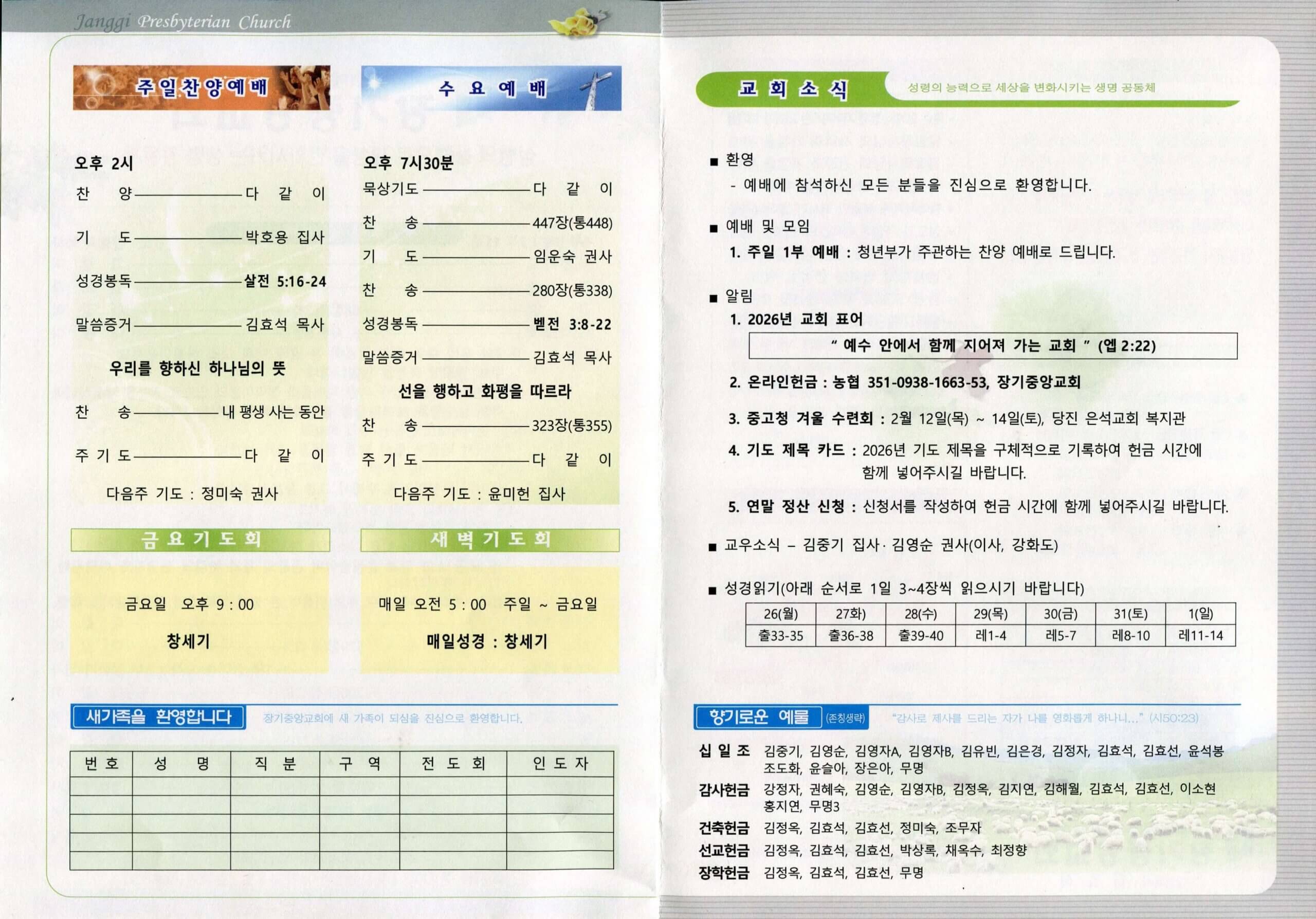 - 2026년 교회 표어: “예수 안에서 함께 지어져 가는 교회” (엡 2:22)