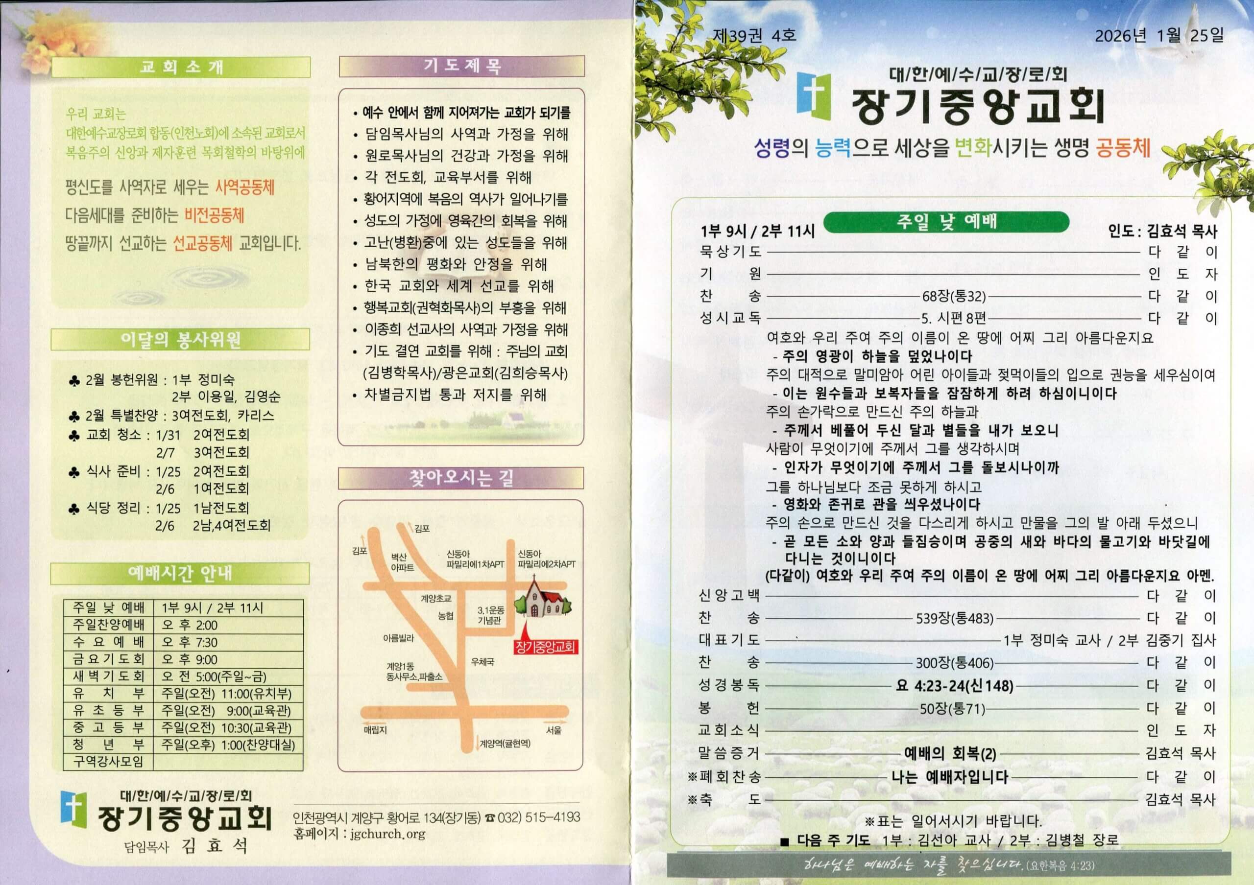 2026년 1월 25일 주일, 참된 예배자로 서는 ‘예배의 회복’을 통해 하늘의 기쁨을 누리는 시간 되시길 바랍니다.