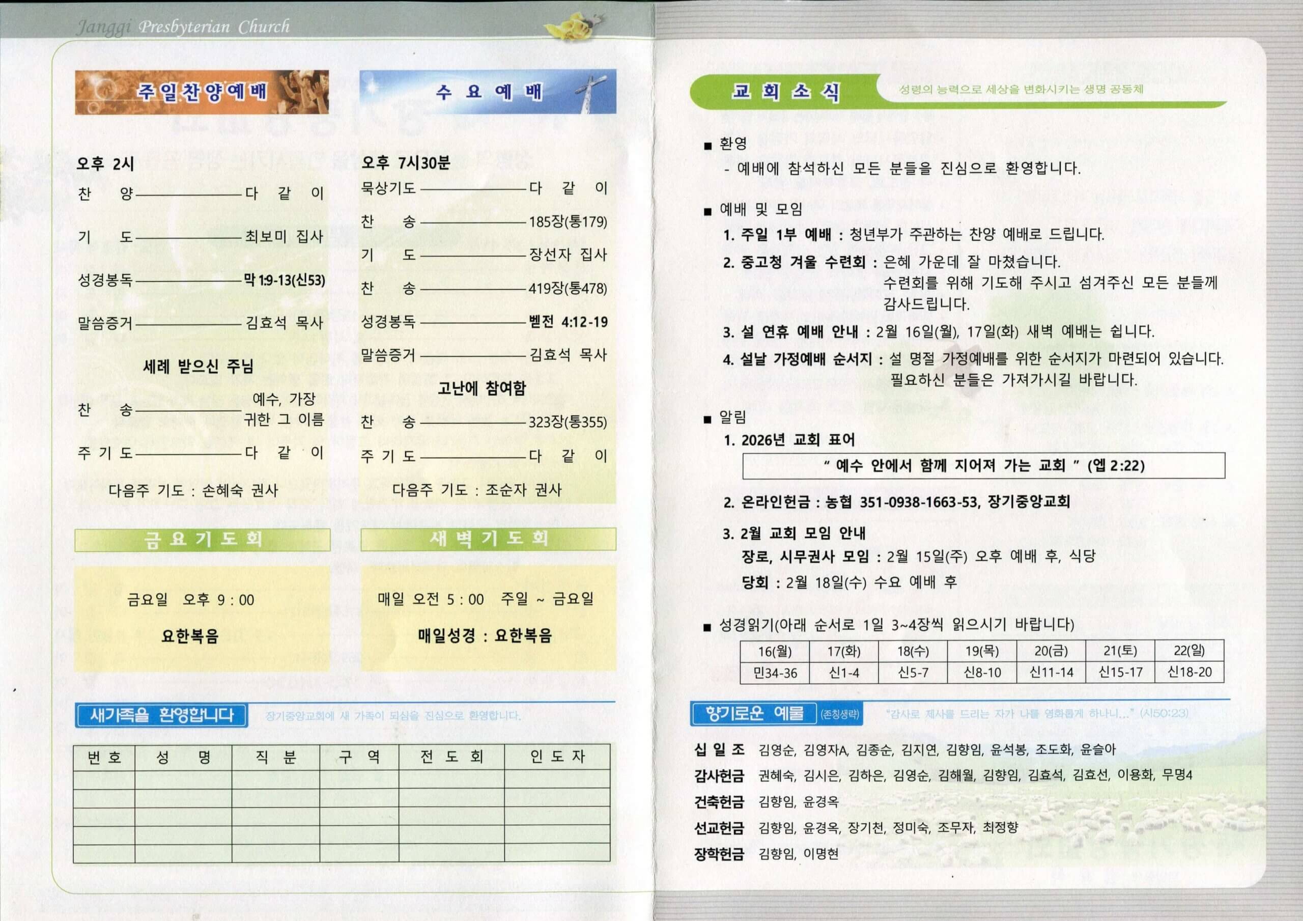 - 2026년 교회 표어: “예수 안에서 함께 지어져 가는 교회” (엡 2:22)