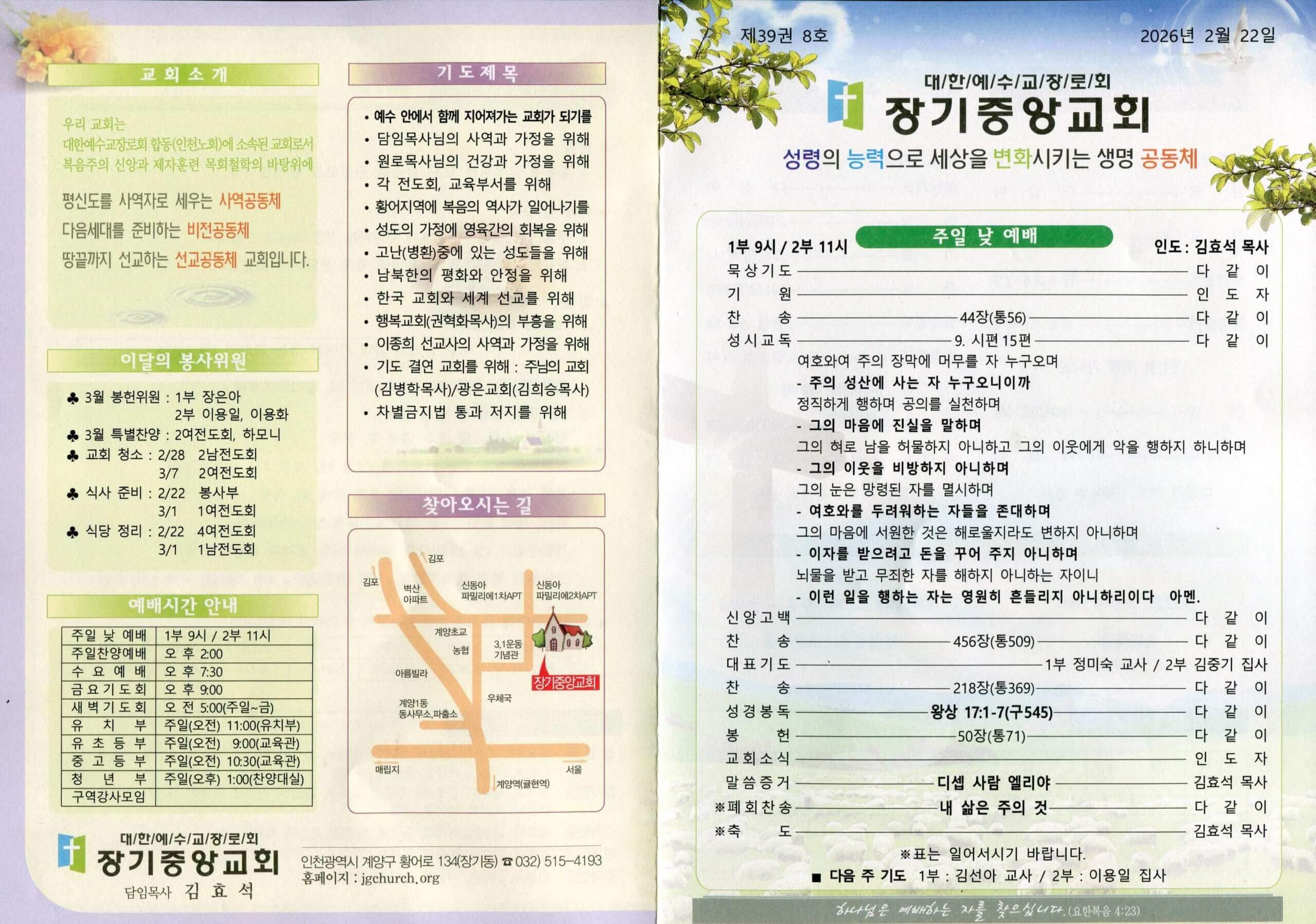 성령의 능력으로 세상을 변화시키는 생명 공동체, 장기중앙교회입니다.