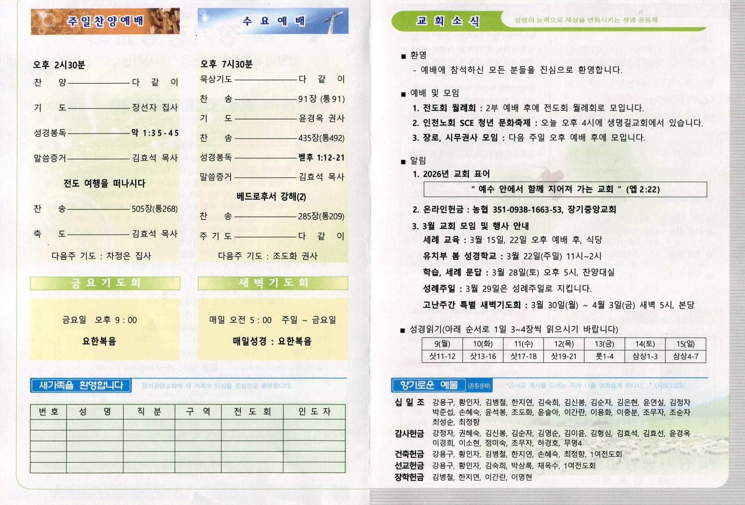 - 2026년 교회 표어: “예수 안에서 함께 지어져 가는 교회” (엡 2:22)