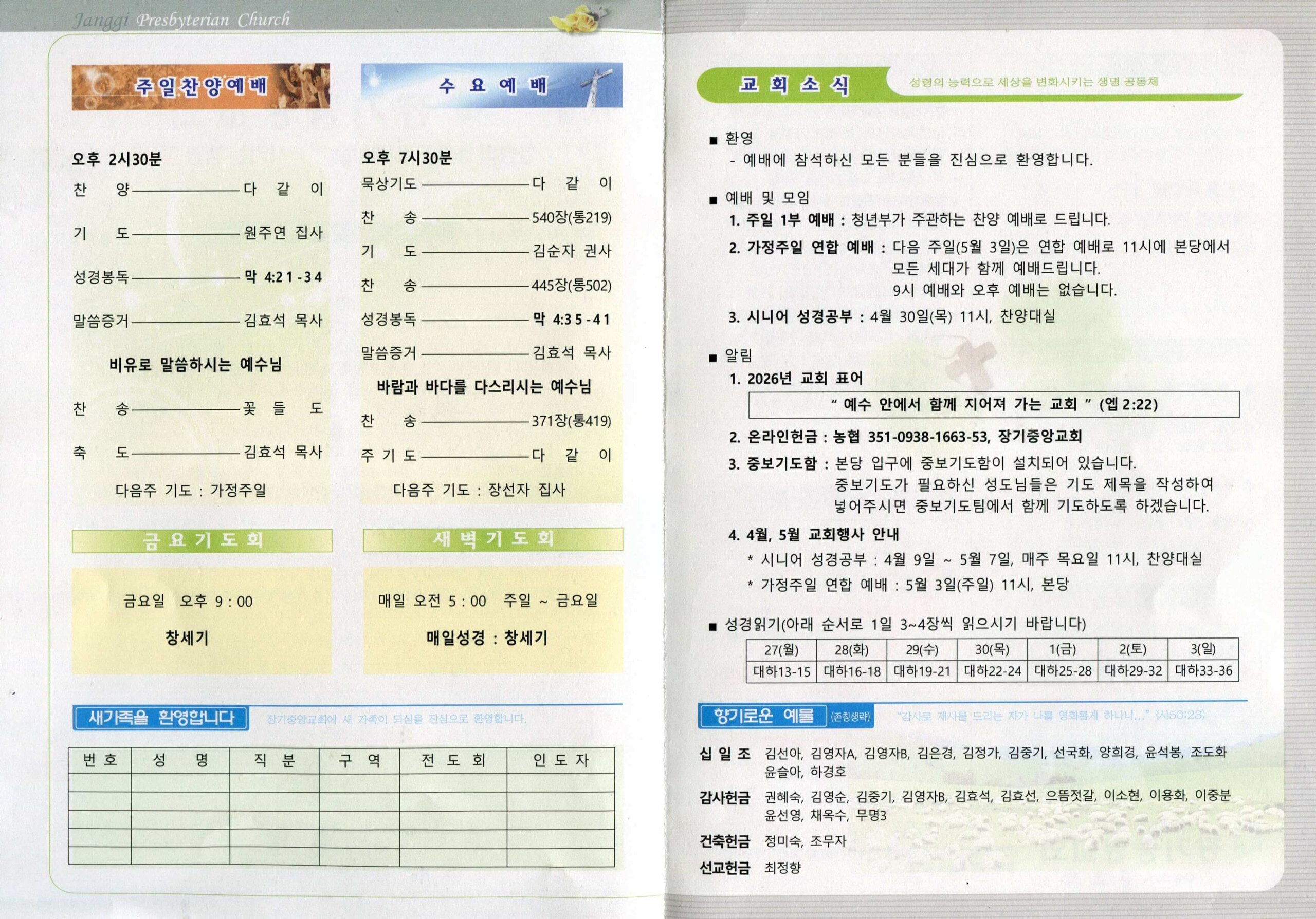 - 2026년 교회 표어: “예수 안에서 함께 지어져 가는 교회” (엡 2:22)