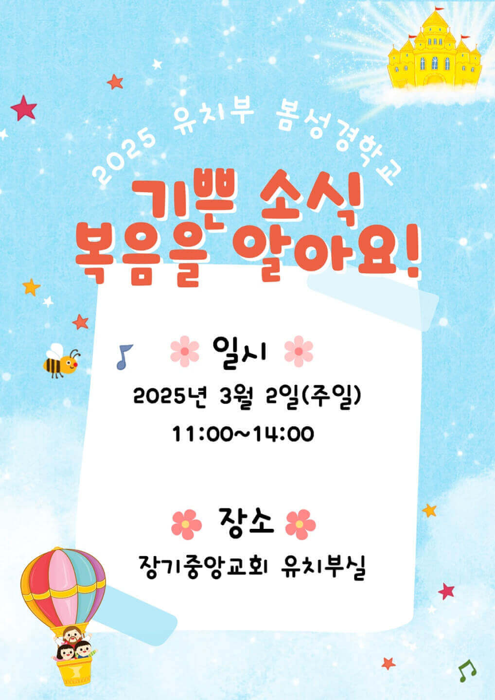 2025 장기중앙교회 유치부 봄 성경학교에 초대합니다!