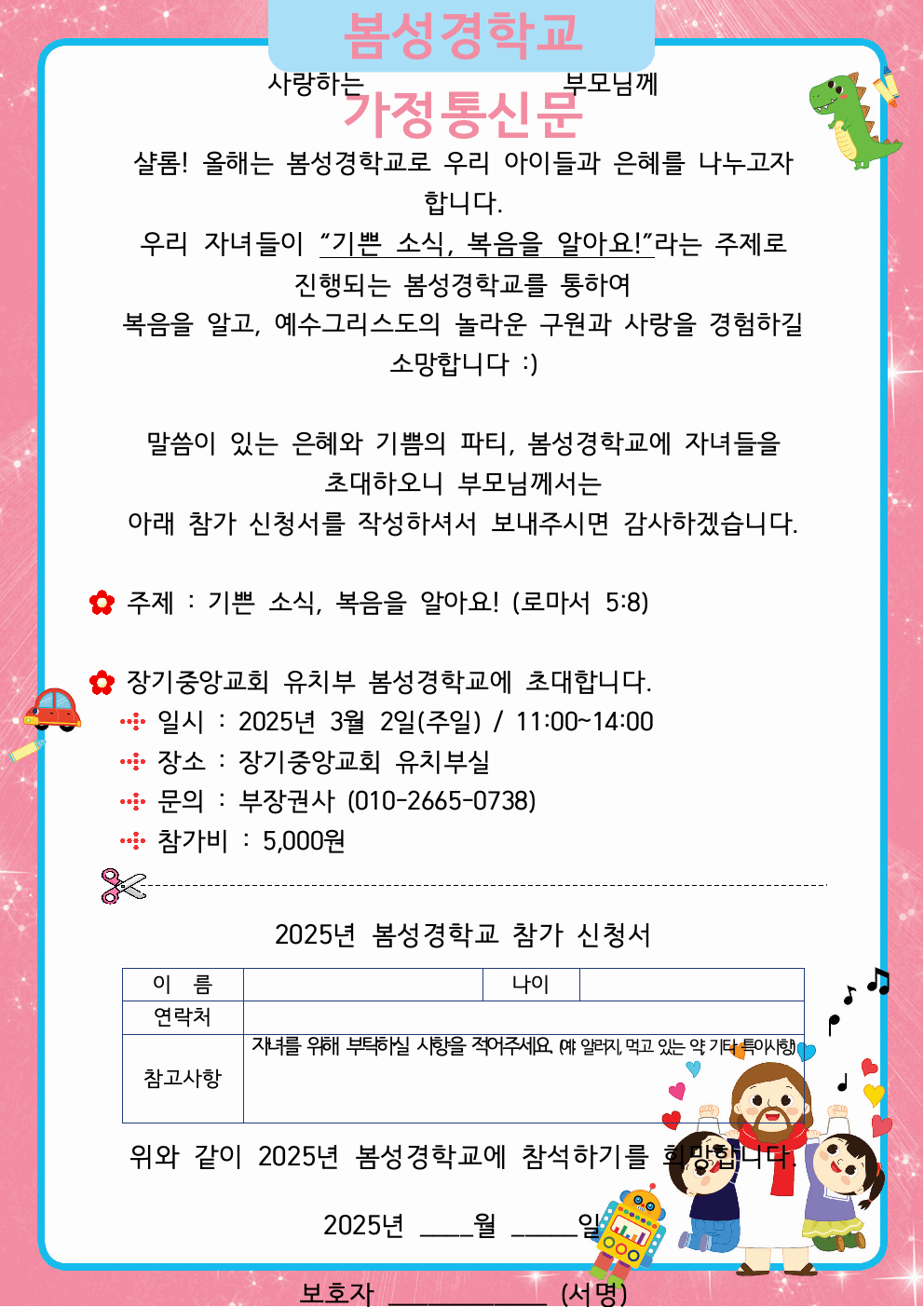 📞 문의: 장기중앙교회 유치부 부장권사 (010-2665-0738)