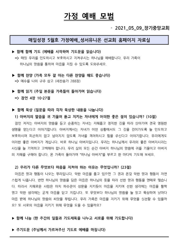 2021년 05월 09일 가정 예배 모범지
