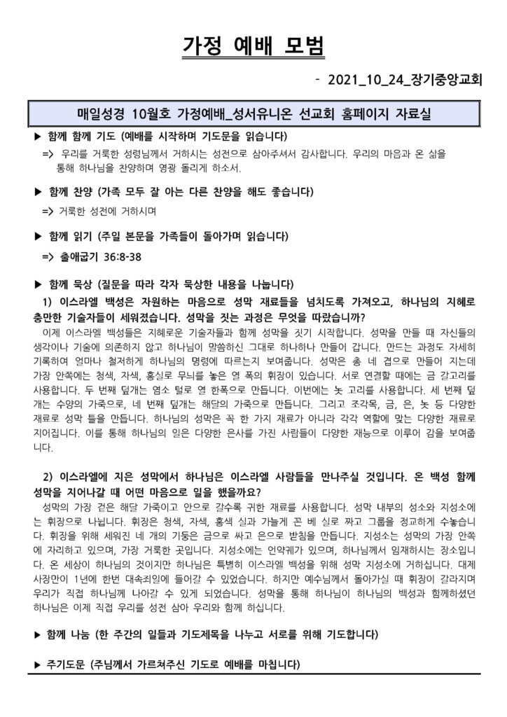 2021년 10월 24일 가정 예배 모범지