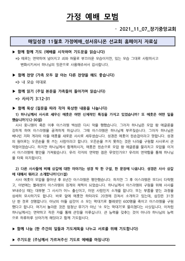 2021년 11월 7일 가정 예배 모범지