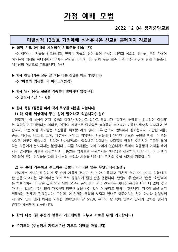 2022년 12월 4일 가정 예배 모범지
