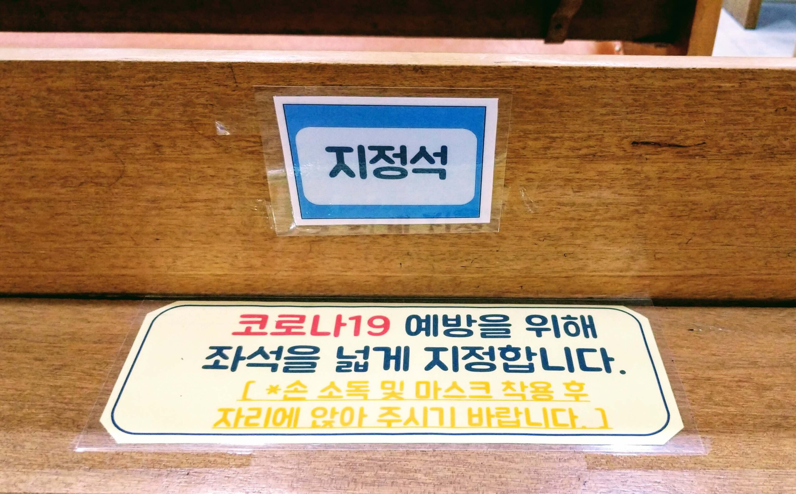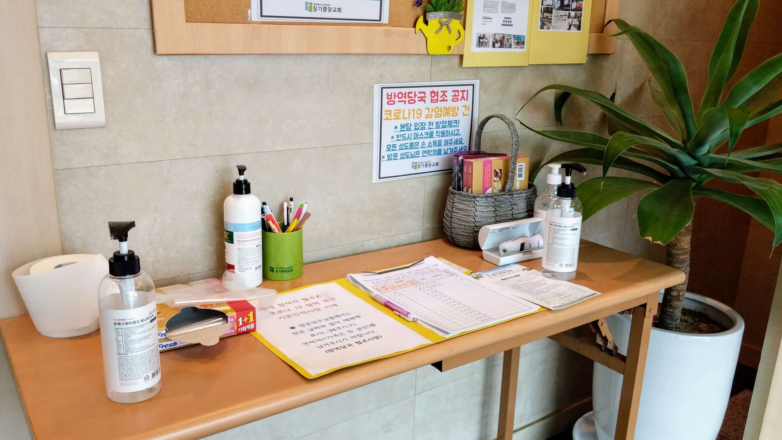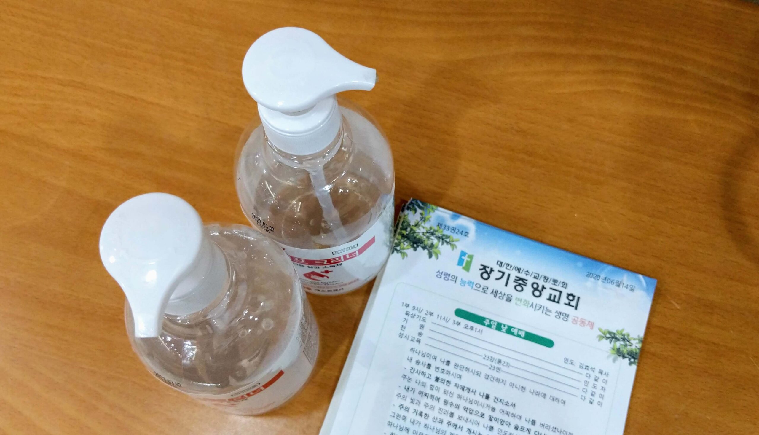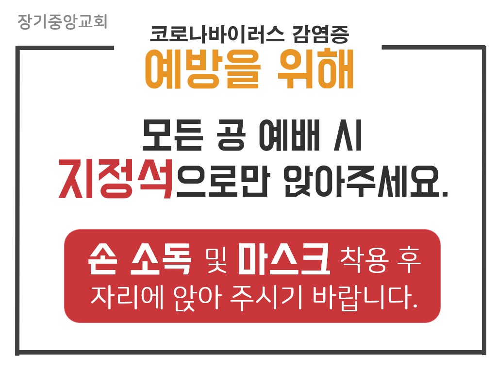 - 예배당 출입 전에는 발열 체크 및 손 세정제를 이용하여 손소독을 해주시기 바랍니다.