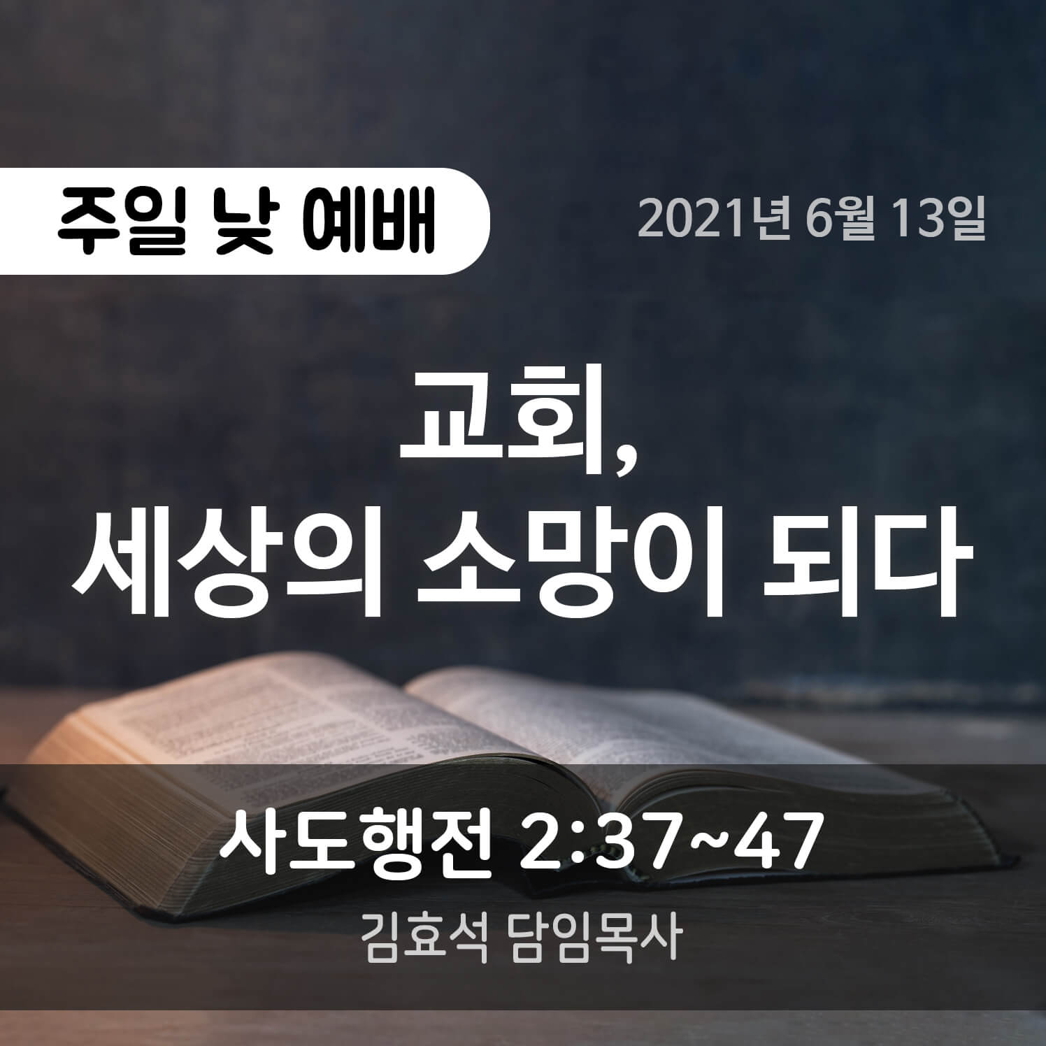- 말씀 제목: 교회, 세상의 소망이 되다