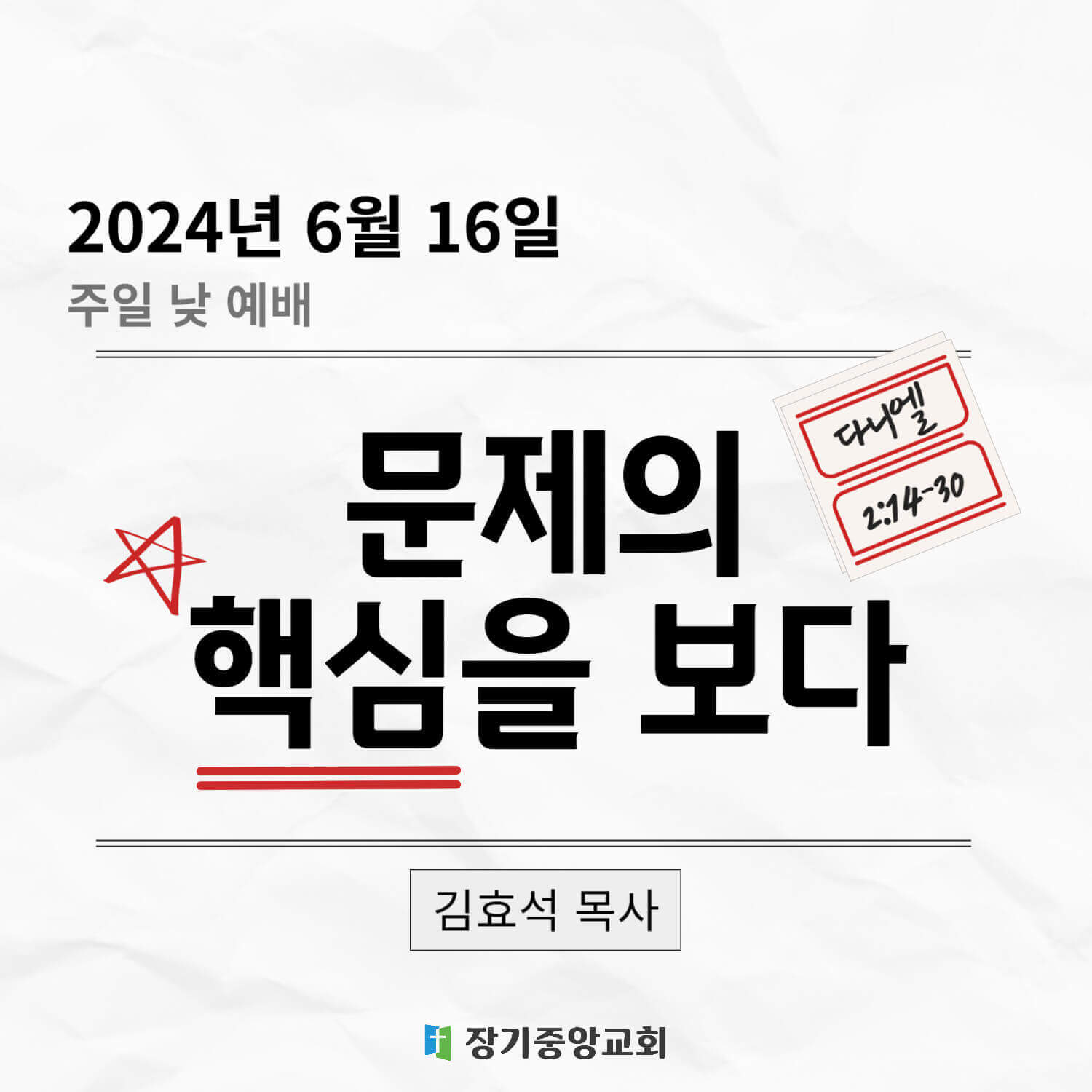- 말씀 제목: 문제의 핵심을 보다