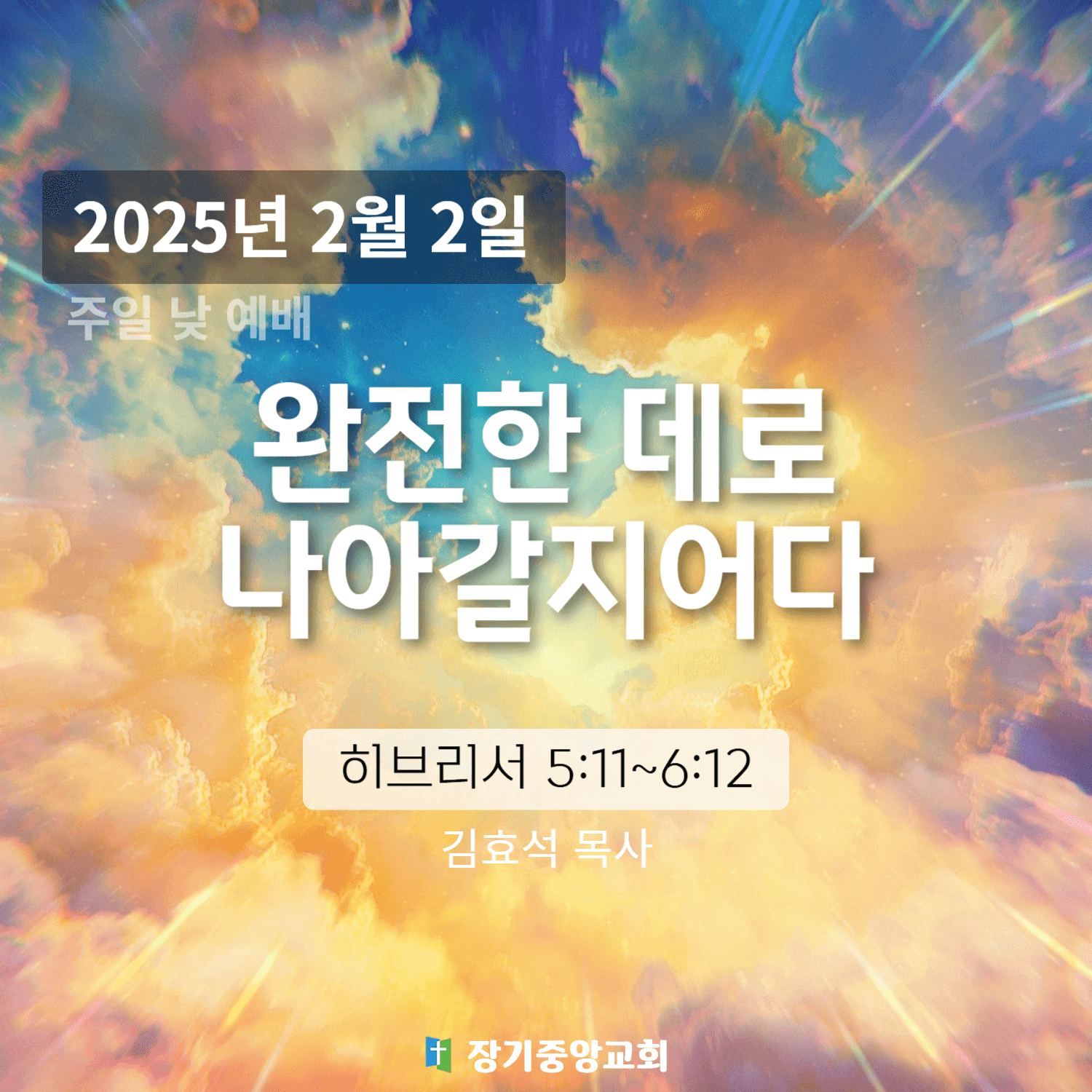 - 말씀 제목: 완전한 데로 나아갈지어다